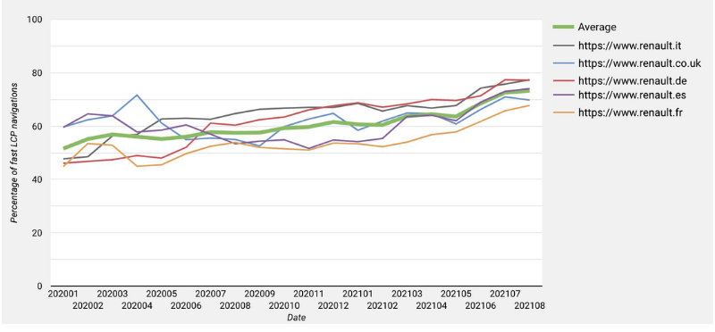 読み込み速度が速いサイトほど訪問者が多い:https://web.dev/case-studies/renault (©web.dev/CC BY 4.0)