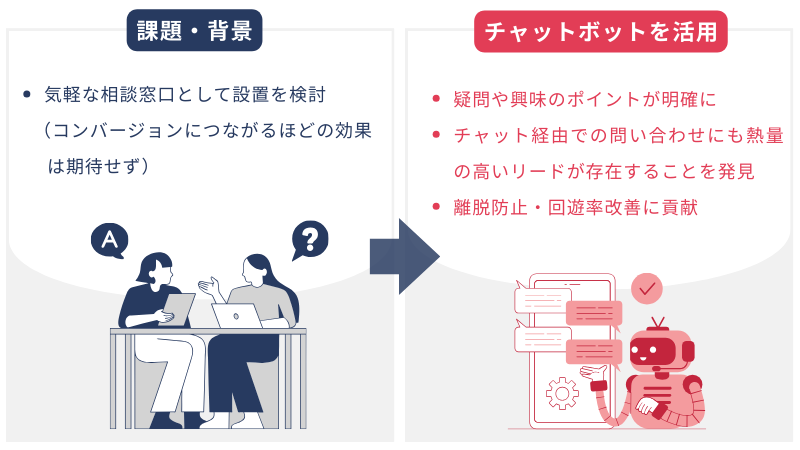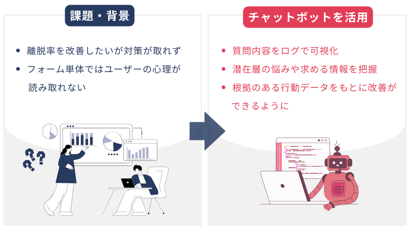 ここでは、チャットボットをフォーム離脱改善に活かした事例をご紹介します。