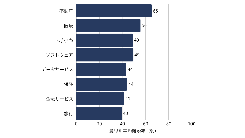 たとえば、2025年の調査では以下の離脱率が報告されています。(※)