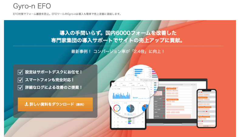 EFOツールは、フォームの作成や改善に特化した専用サービスです。FormAssistやGyro-n EFOをはじめ、複数のツールが提供されています。