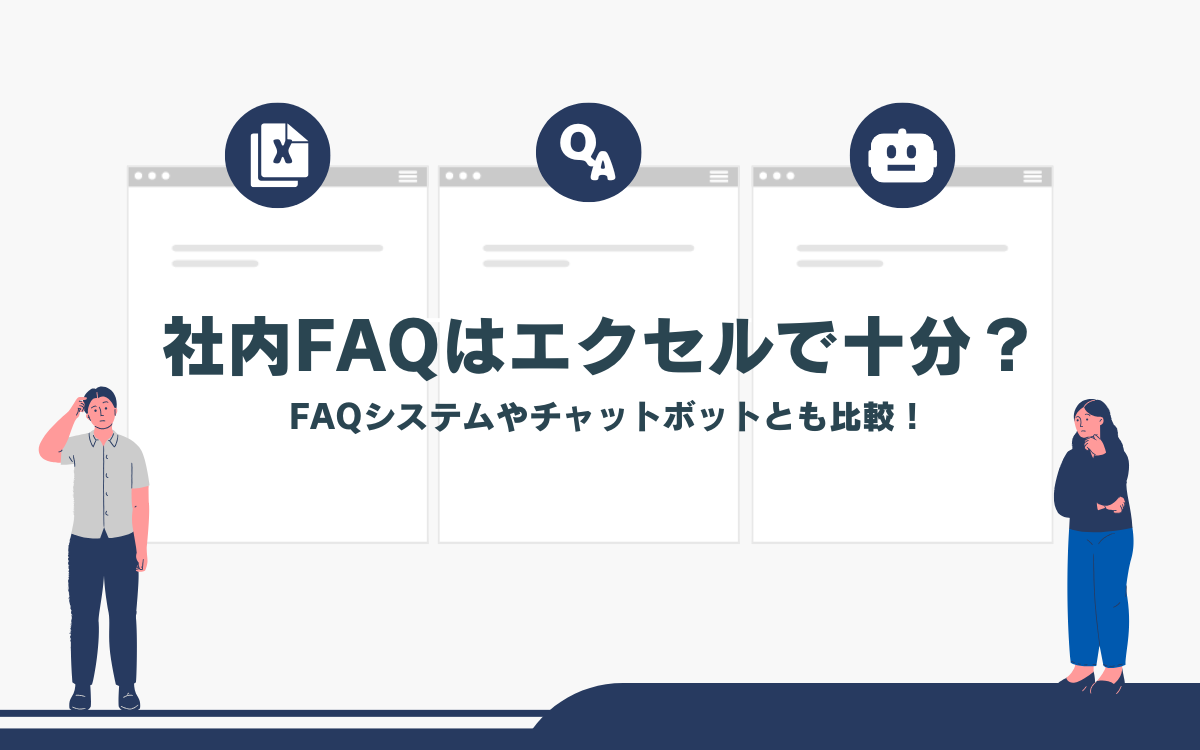 エクセル、FAQシステム、チャットボットで社内FAQを作成・管理する場合のメリットとデメリットを比較してみました。