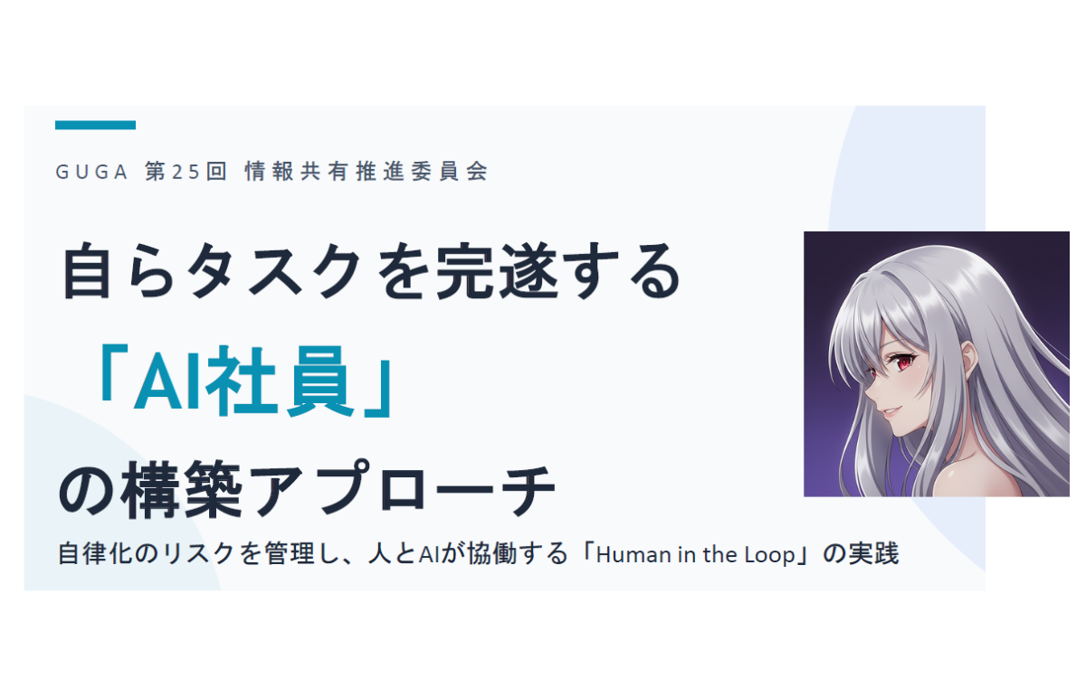 2026年3月18日(水)に開催されたGUGA第25回情報共有推進委員会にて、弊社代表 岸本 渉 / CTO 広橋 直之が講演を行いました。