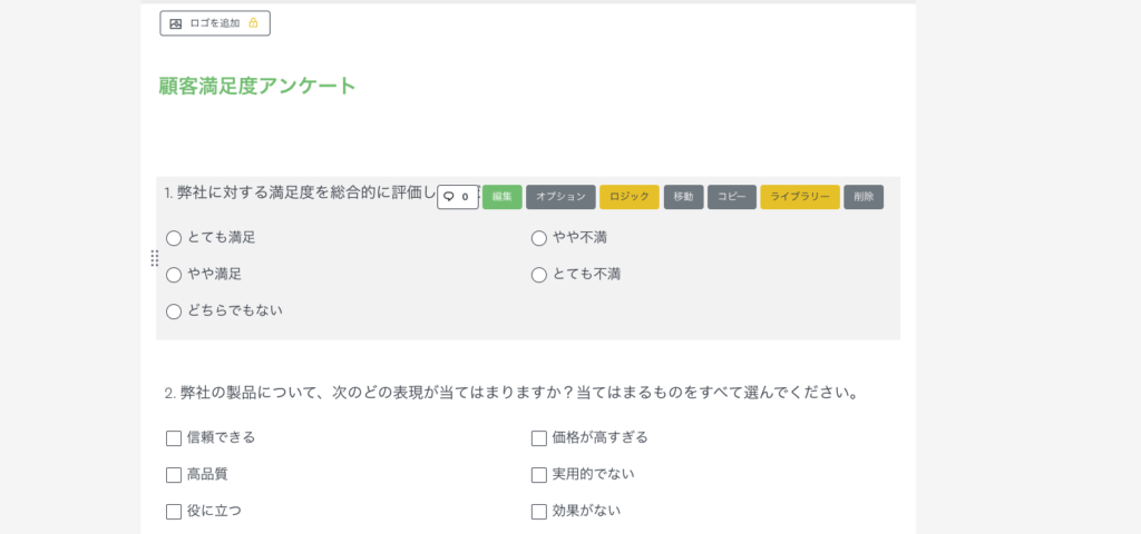 SurveyMonkeyの編集画面例